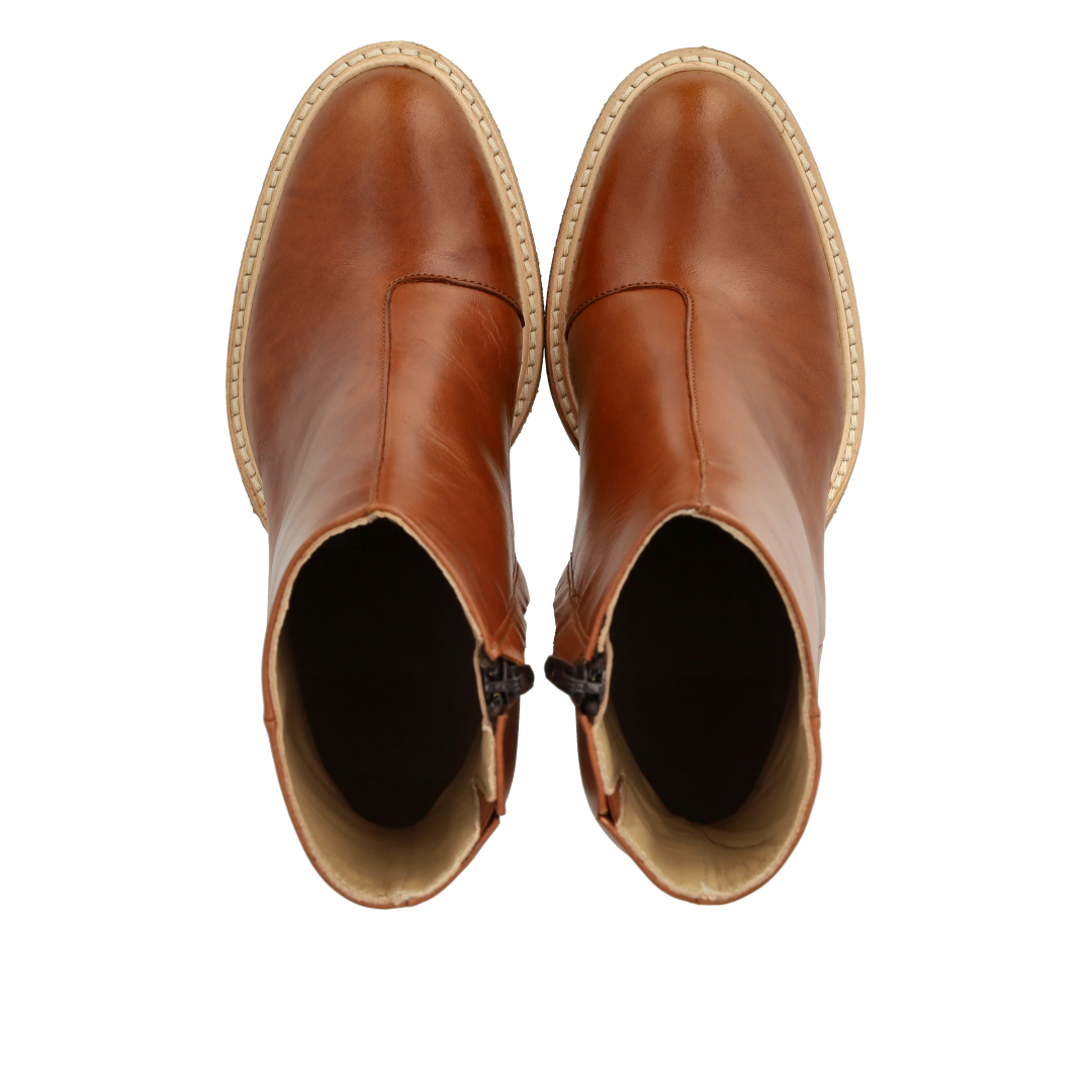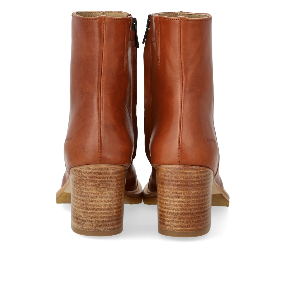 Von den 70er Jahren inspirierter Lederstiefel mit 6 cm hohem Blockabsatz. Der Stiefel hat eine mandelförmige Spitze, einen eng anliegenden Schaft mit Reißverschluss, weiches Kreppgummi unter der Innensohle für zusätzlichen Komfort und Stabilität, ein geprägtes Logo an der Ferse, eine gepolsterte Innensohle, Lederfutter und ist aus natürlichem und atmungsaktivem Leder gefertigt. Entworfen in Dänemark und handgefertigt mit Liebe in Portugal.