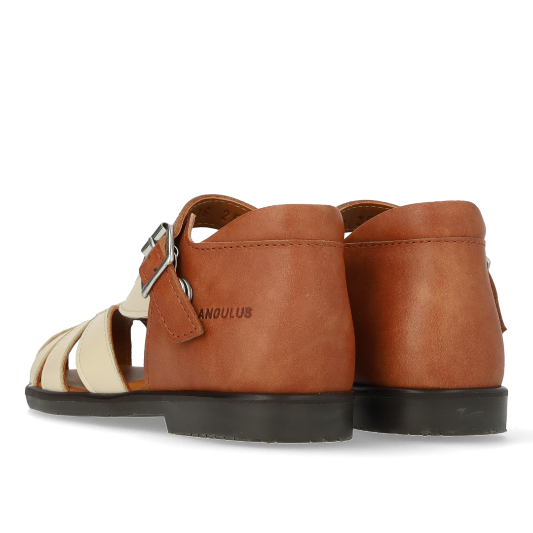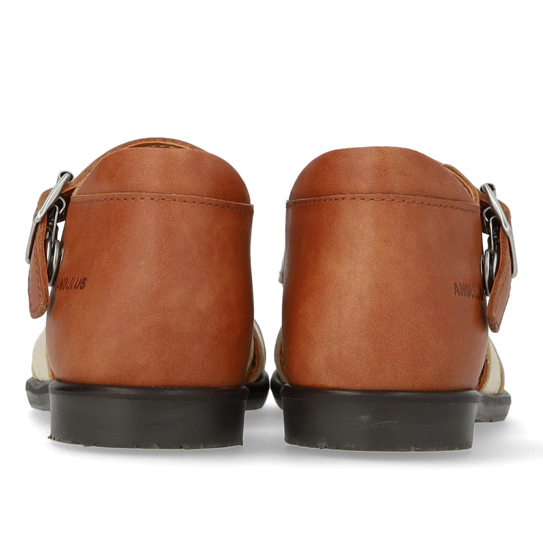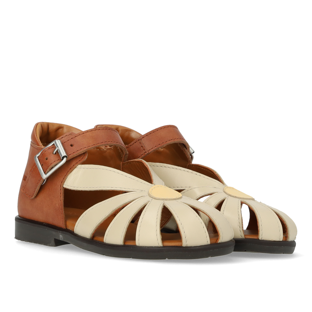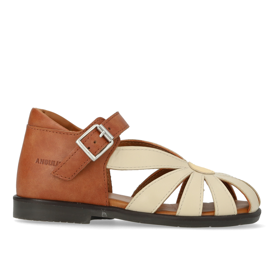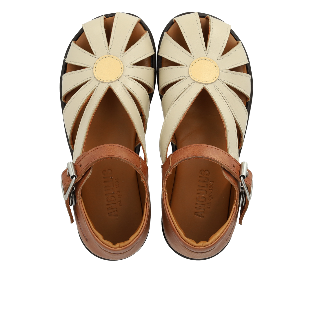 Margueritte-Sandale. Die Sandale verfügt über einen verstellbaren Riemen mit Schnalle und praktischem, verstecktem Druckknopf, eine geschlossene Spitze, ein geprägtes Logo an der Ferse, eine gepolsterte Innensohle, chromfreies Lederfutter, eine feste Fersenkappe mit gepolstertem Kragen für zusätzlichen Komfort, Stabilität und Halt und eine leichte, weiche und flexible dunkelbraune ANGULUS-Gummisohle mit Fußgewölbestütze, die einen süßen Sonnenaufdruck hinterlässt. Gefertigt aus natürlichem und atmungsaktivem Leder. Entworfen in Dänemark und mit Liebe handgefertigt in Portugal. Messen Sie vor dem Kauf immer den Fuß Ihres Kindes, um sicherzustellen, dass Sie die richtige Größe erhalten. Wir empfehlen einen Wachstumszuschlag von 1 cm.