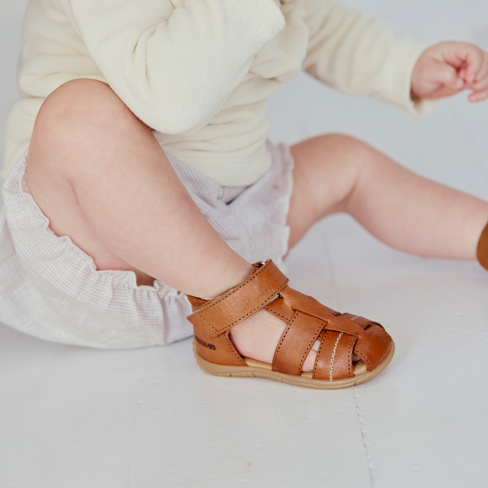 Die erste Kindersandale mit dekorativen Kontrastnähten, bei deren Entwicklung besonderer Wert auf Stabilität und Flexibilität gelegt wurde. Der Schuh ist leicht mit einer flexiblen Gummisohle mit Anti-Rutsch, so dass es optimal für Babys erste Schritte. Der Schuh ist mit verstellbaren Klettverschlüssen ausgestattet, bei deren Gestaltung besonderer Wert auf eine einfache Anpassung gelegt wurde. Die feste Fersenkappe und der verstellbare Verschluss sorgen für Stabilität und Halt bei den ersten Schritten. Der Schuh hat einen gepolsterten Kragen für einen weichen und bequemen Schuh und ein chromfreies Lederfutter. Gefertigt aus natürlichem und atmungsaktivem Leder. Entworfen in Dänemark und handgefertigt mit Liebe in Portugal.