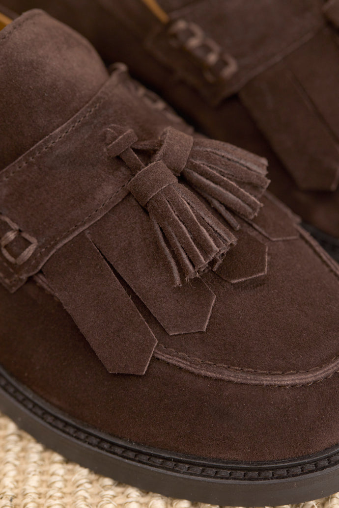 Entdecken Sie die neuen Lieblingsschuhe der Saison aus dunkelbraunem Premium-Wildleder, die kompromisslosen Komfort mit zurückhaltendem Alltagsluxus verbinden.