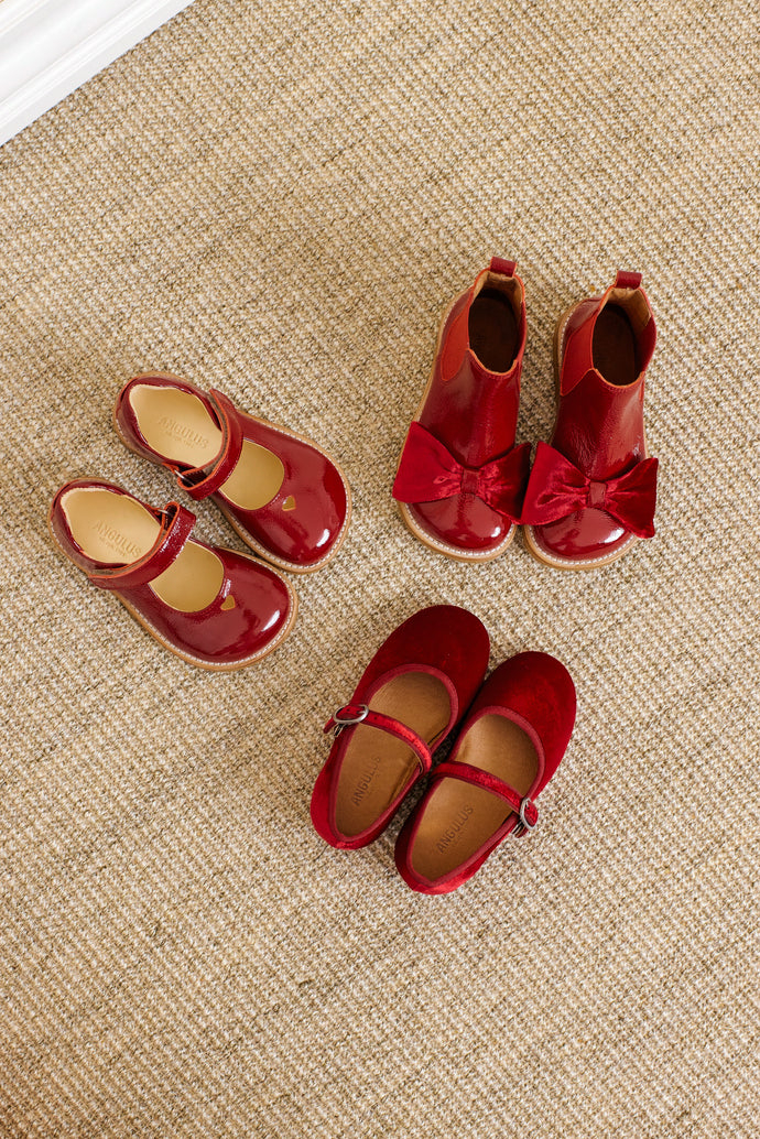 Machen Sie sich bereit für magische Weihnachtserinnerungen mit unserer neuesten Kollektion festlicher roter Schuhe, darunter ein beliebter Klassiker in der Weihnachtsfarbe dieser Saison, süße Samtschleifen und ein Ballerina-Modell komplett aus Samt.