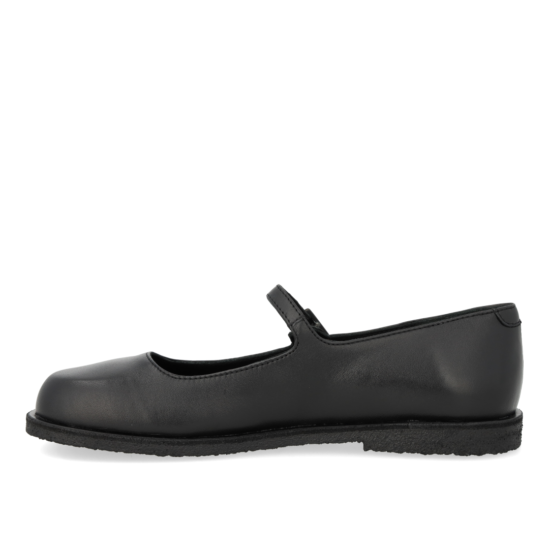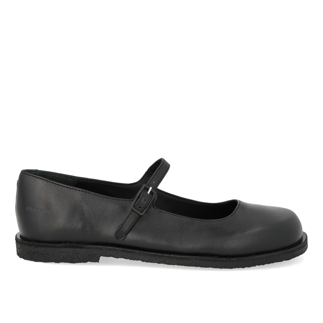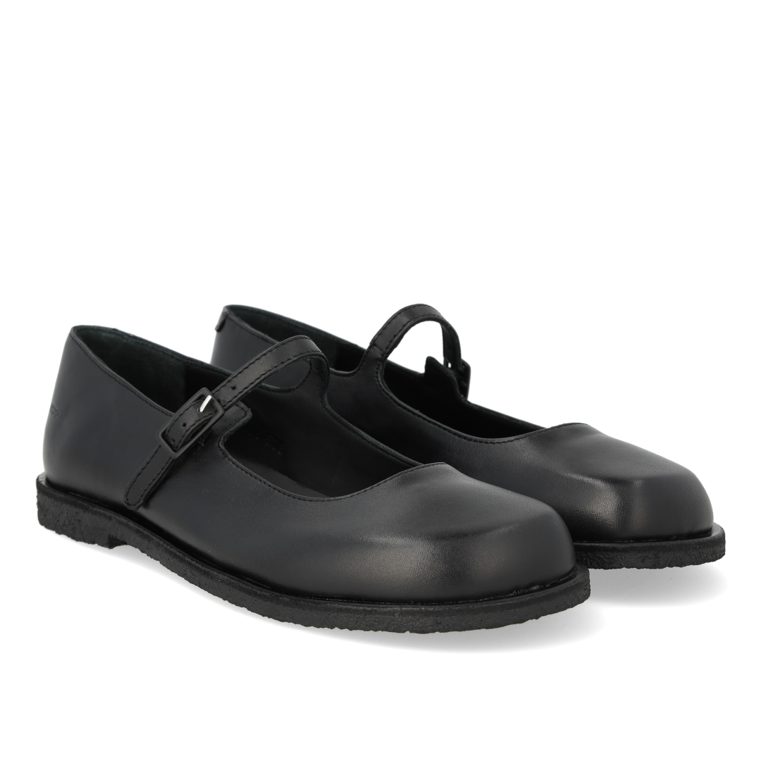Klassischer Ballerina mit geräumiger Passform. Der Schuh hat eine abgerundete Spitze, eine gepolsterte Innensohle, chromfreies Lederfutter, einen schmalen Riemen über dem Vorderfuß mit verstellbarem Schnallenverschluss und eine leichte, weiche und flexible schwarze Kreppsohle aus erneuerbarem Naturkautschuk. Gefertigt aus natürlichem und atmungsaktivem Leder. Entworfen in Dänemark und mit Liebe handgefertigt in Portugal.