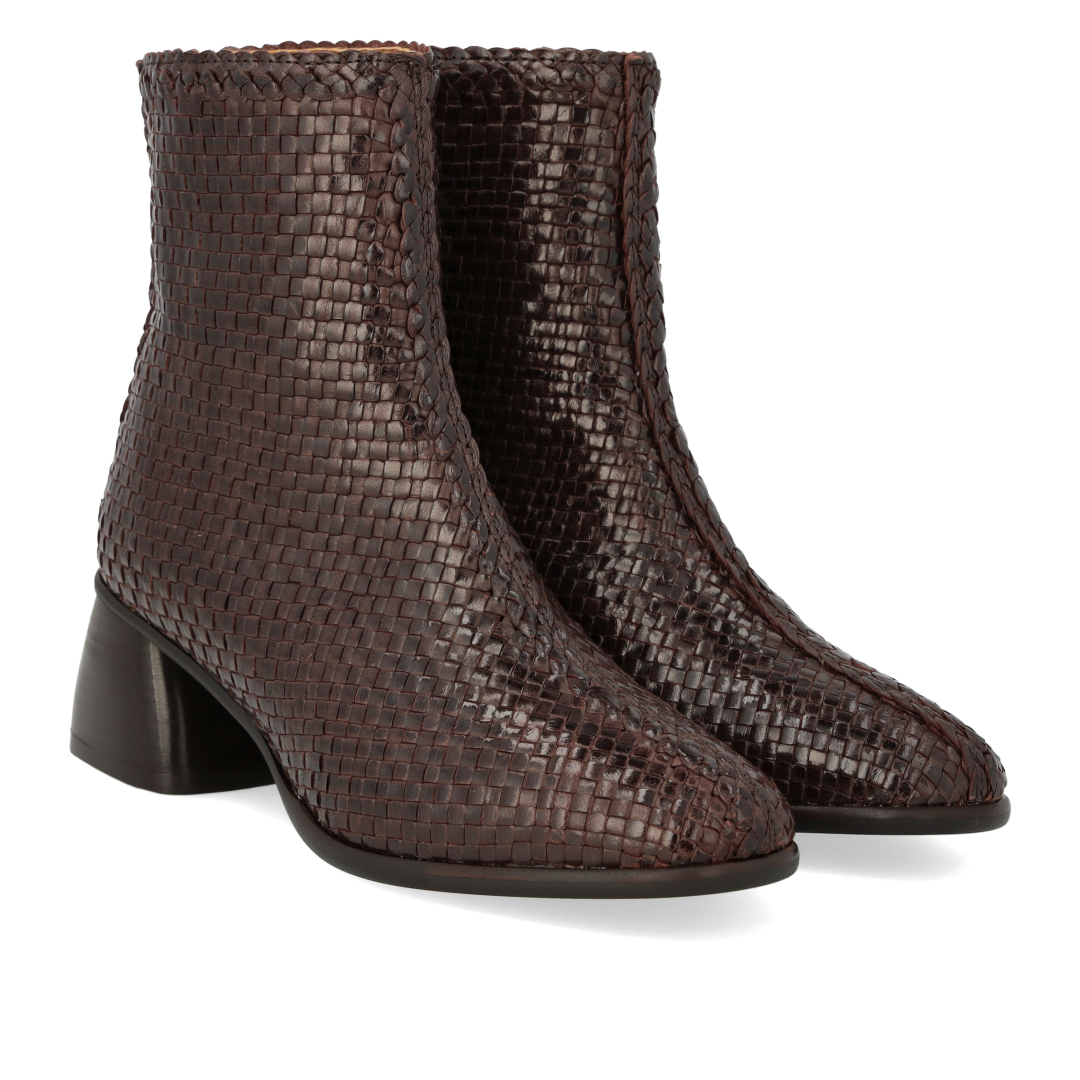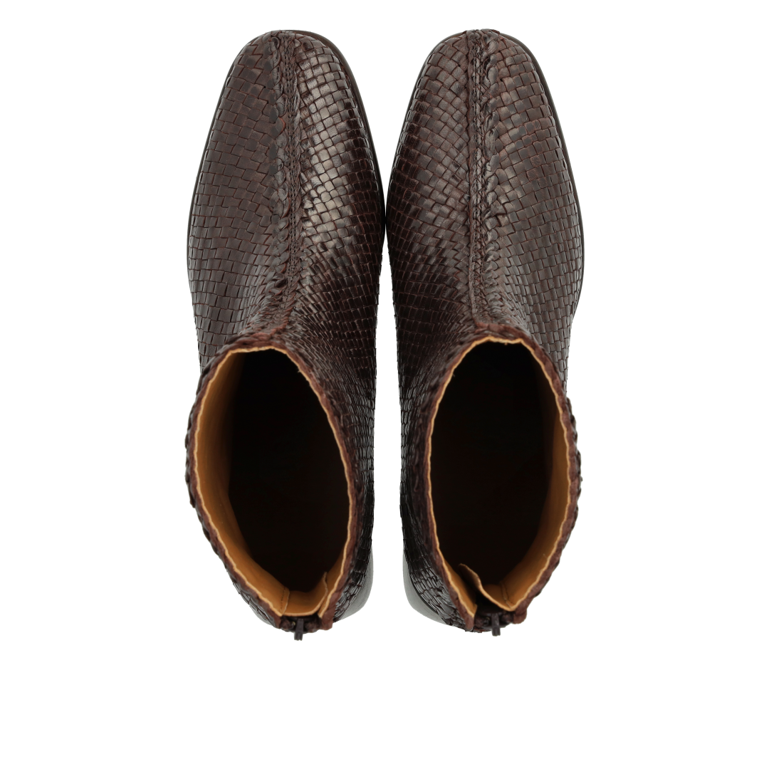 Handgeflochtener Stiefel mit skulpturalem Absatz