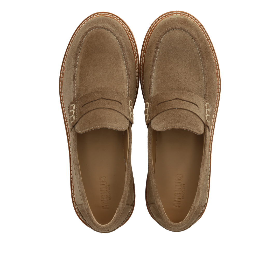 Klassischer Penny-Slipper aus Leder mit einer Traktionssohle. Der Slipper hat eine runde Spitze, eine feste Fersenkappe, eine gepolsterte Innensohle, chromfreies Lederfutter und ist aus natürlichem und atmungsaktivem Leder gefertigt. Entworfen in Dänemark und handgefertigt mit Liebe in Portugal.