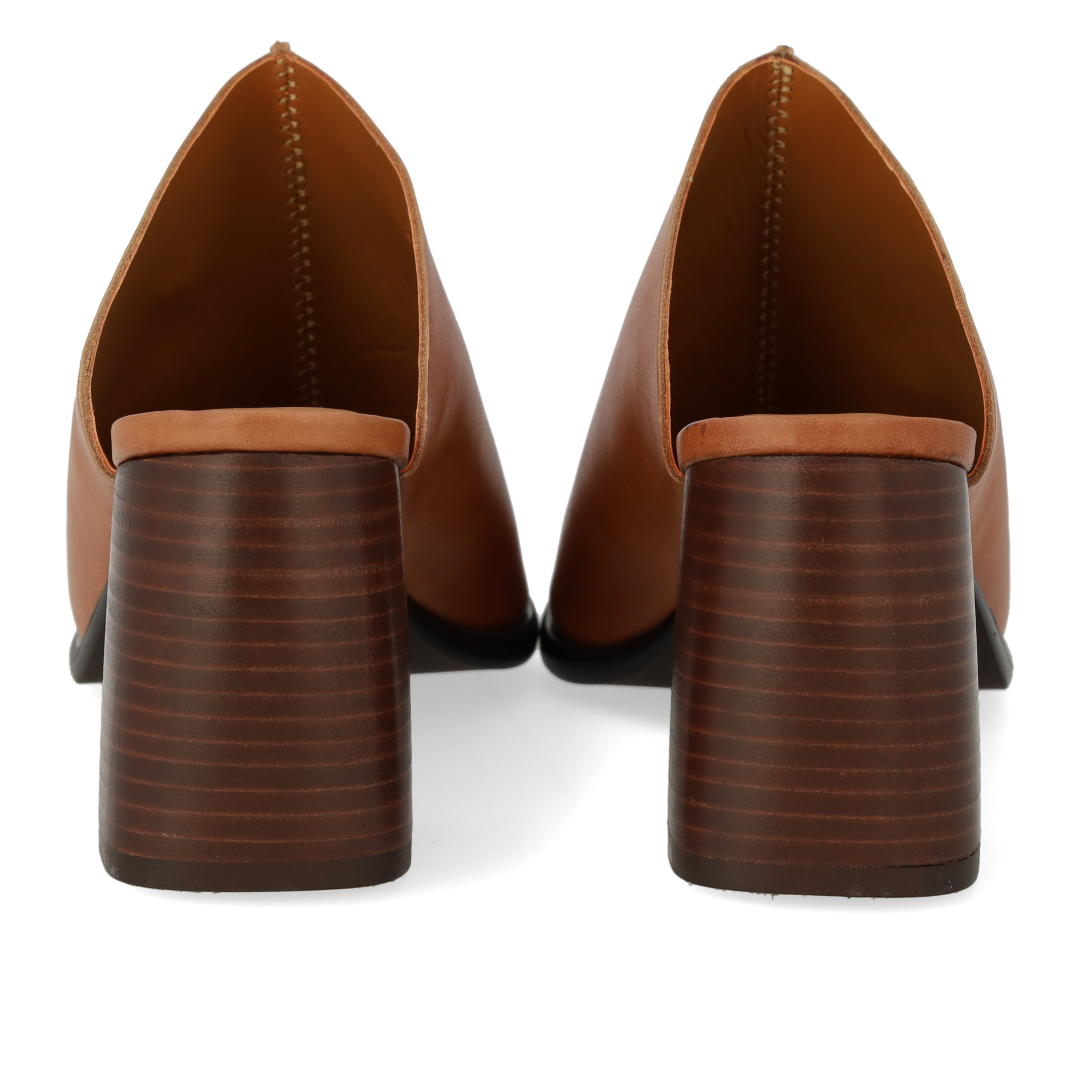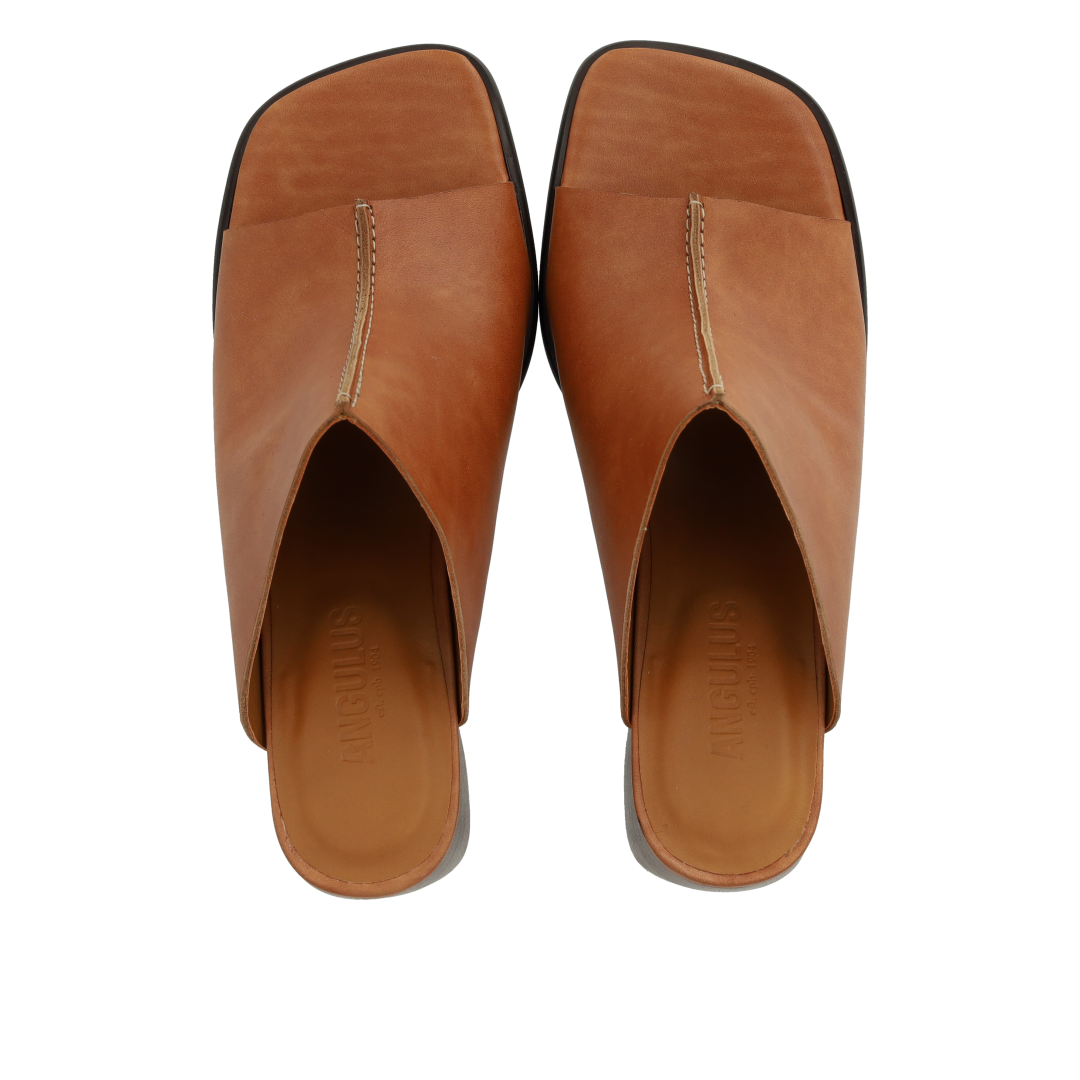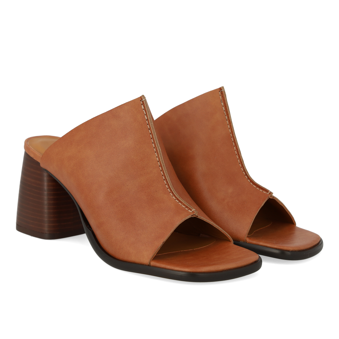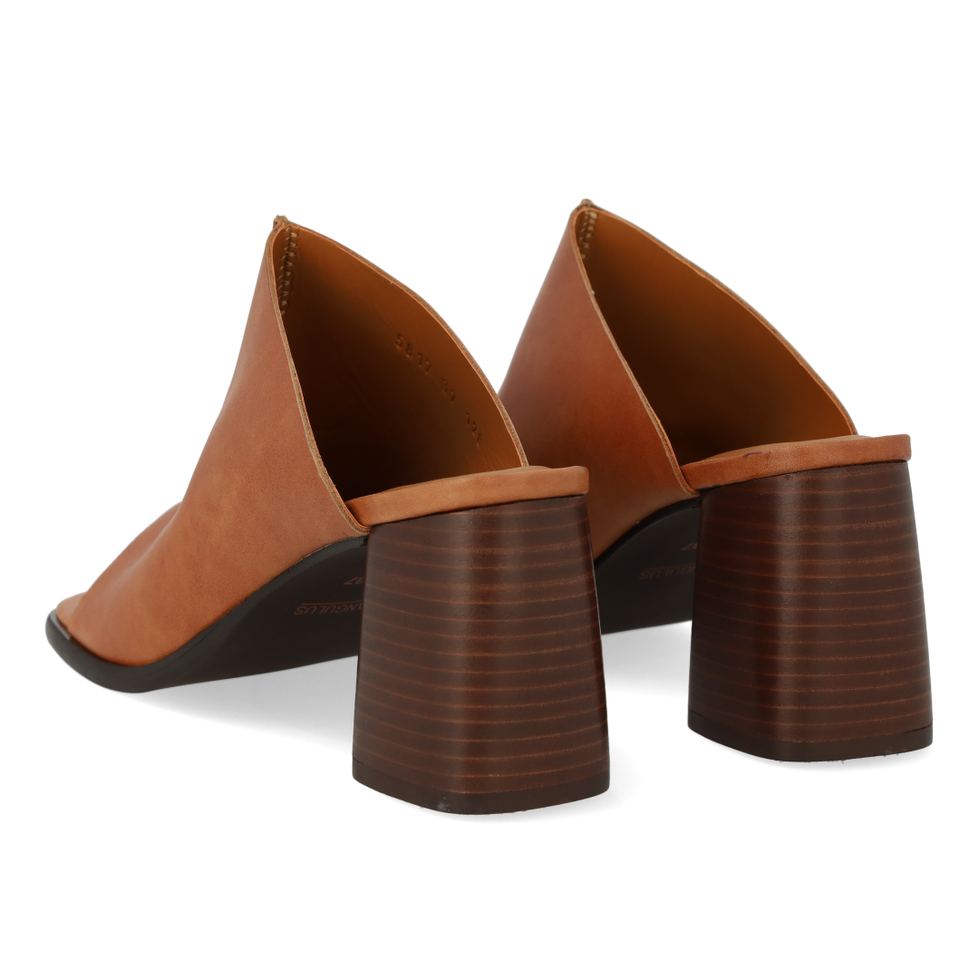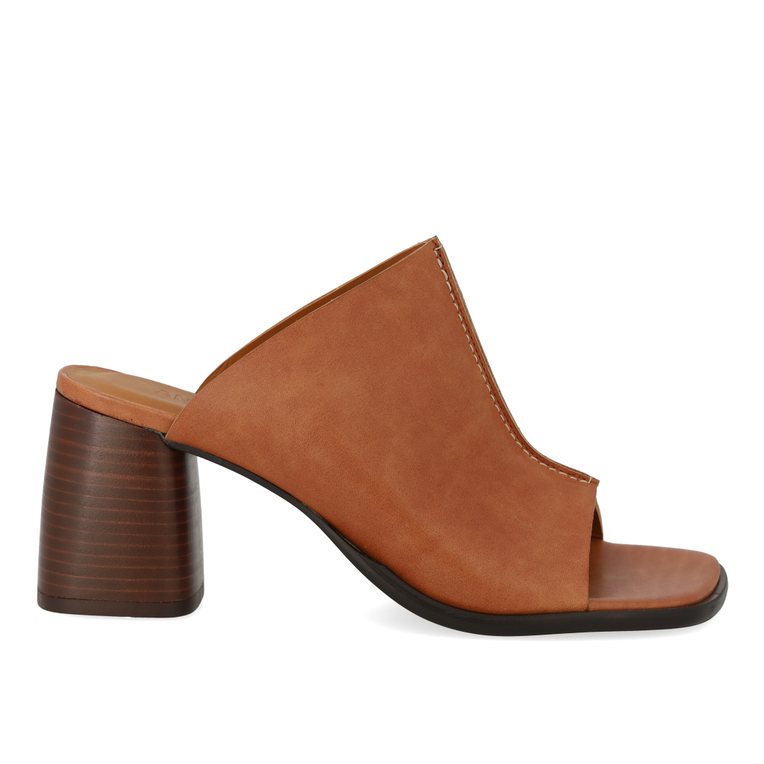 Pantolette aus Leder mit skulpturalem Absatz und mittiger Naht. Die Sandale hat eine quadratische Spitze, eine gepolsterte Innensohle aus Leder und eine leichte Tunitsohle mit einem 7 cm hohen Absatz. Gefertigt aus natürlichem und atmungsaktivem Leder. Entworfen in Dänemark und handgefertigt mit Liebe in Portugal.