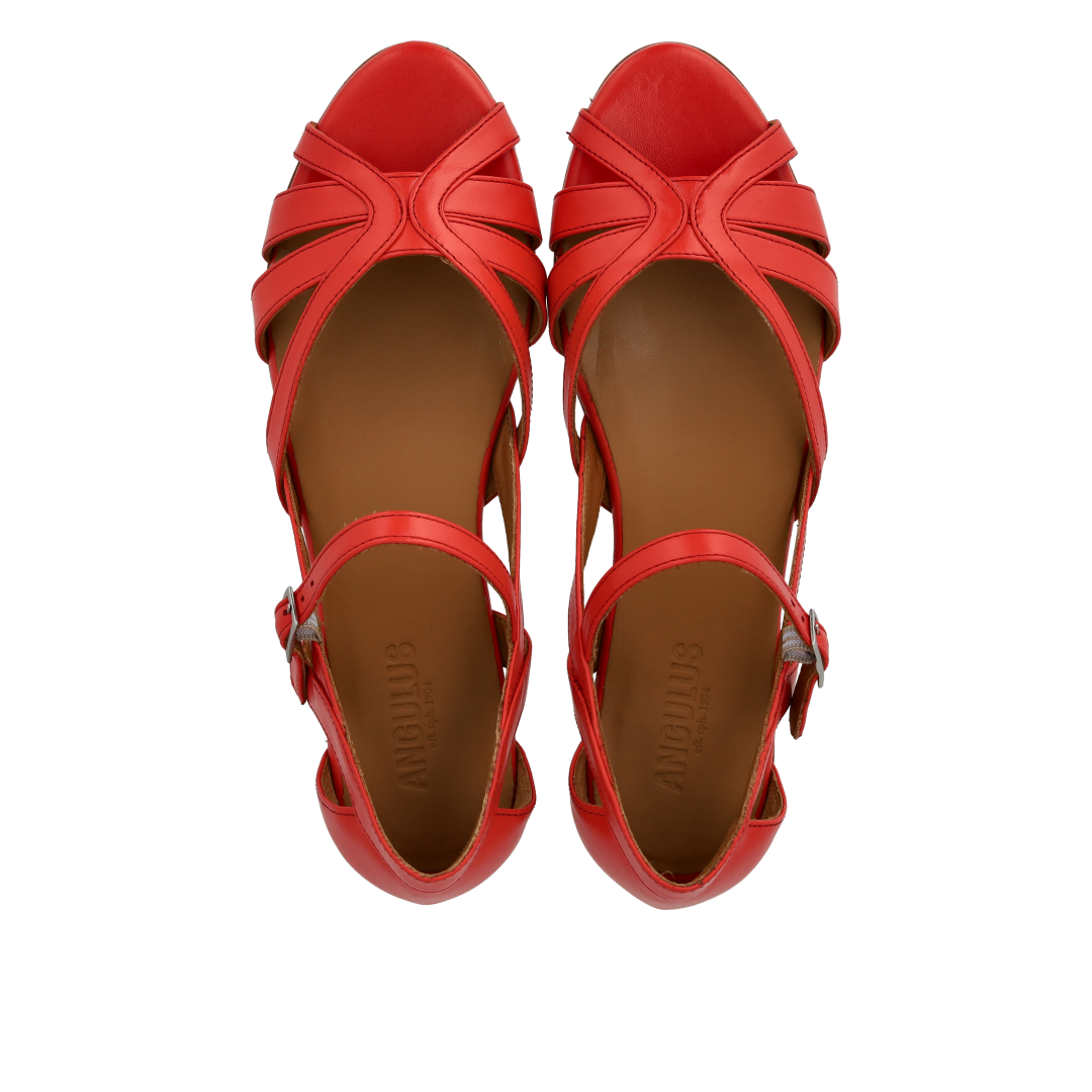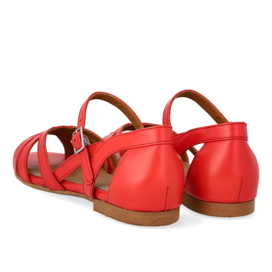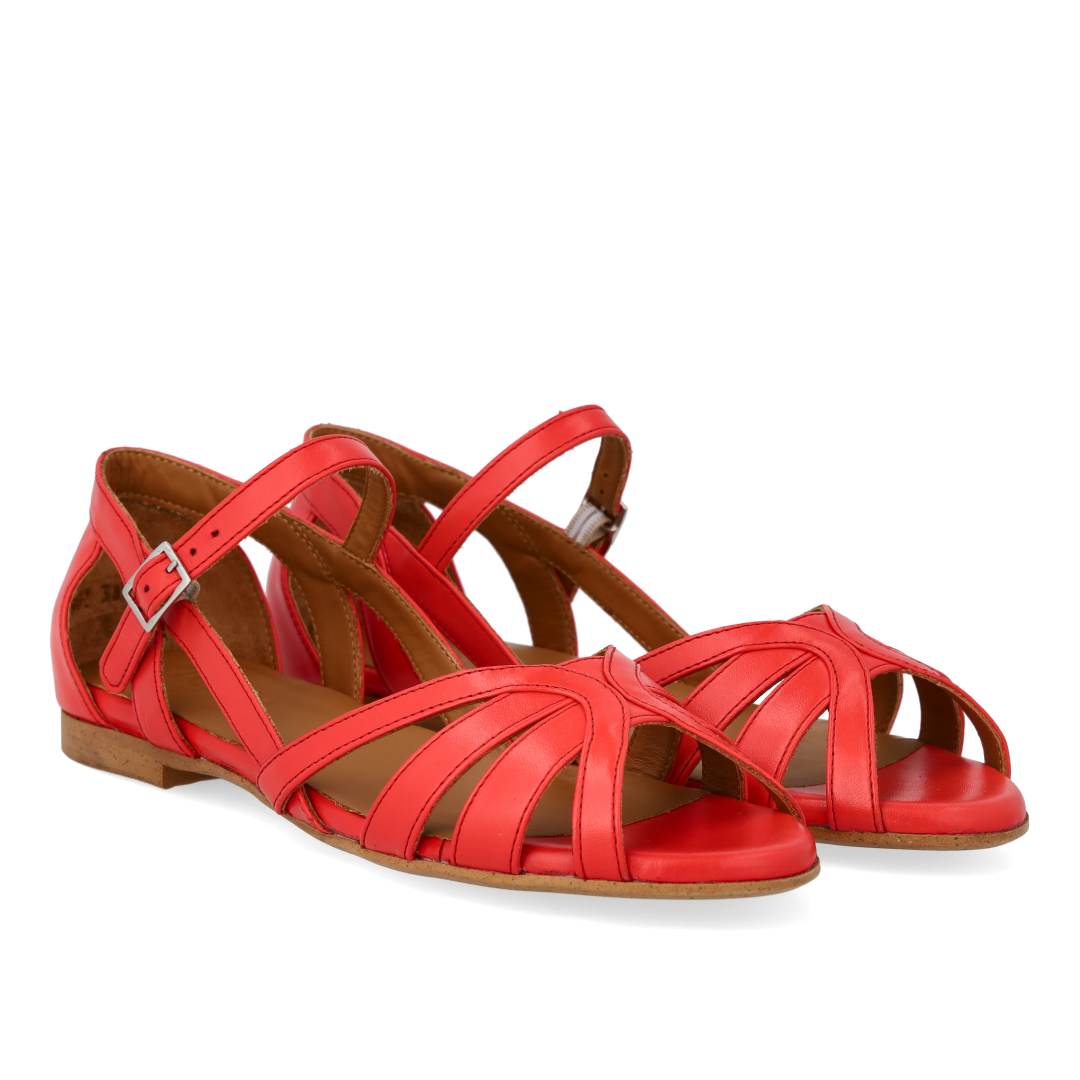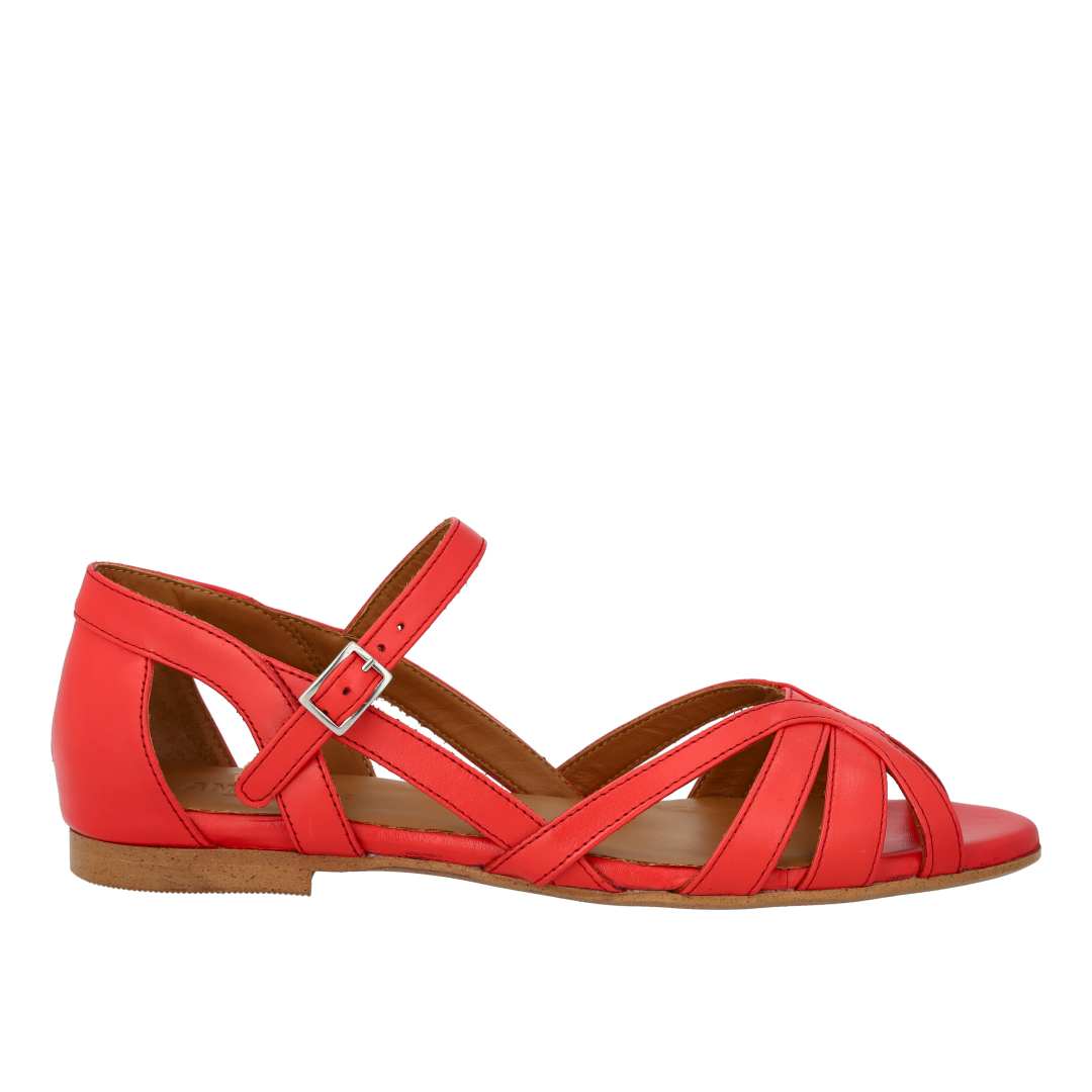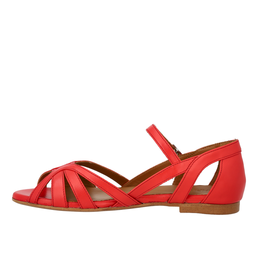 Die Sandale hat eine runde Spitze, eine feste Fersenkappe, einen verstellbaren Verschluss mit goldener Schnalle, eine gepolsterte Innensohle, chromfreies Lederfutter und eine leichte Tunikasohle.