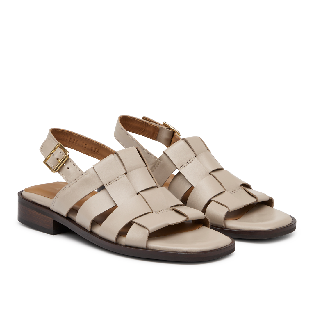 Geflochtene Ledersandale mit dunkelbrauner Tunitsohle.