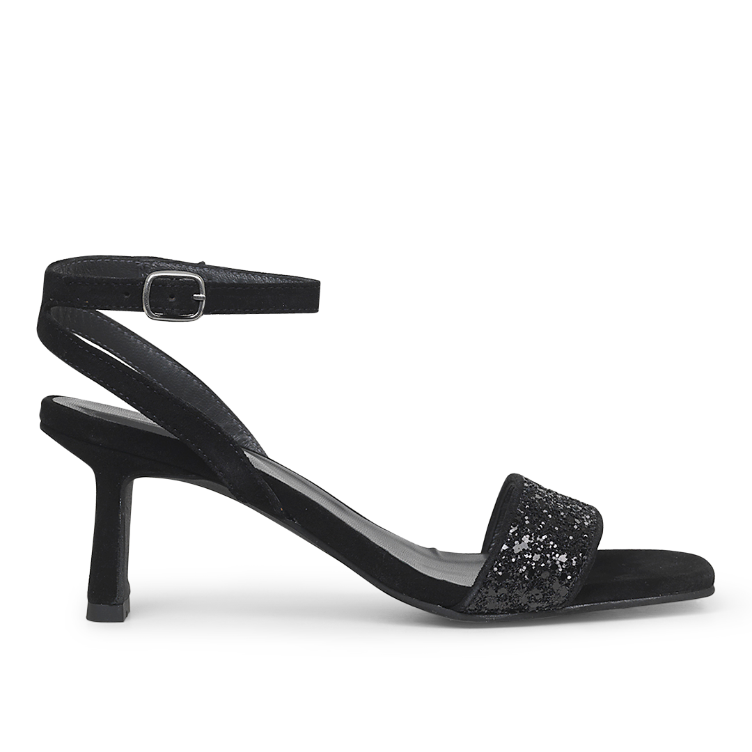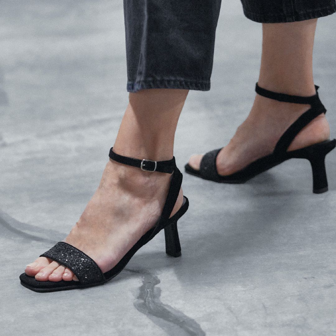 Minimalistischer Wildleder-Stil mit einem glitzernden Glitzer-Riemen.