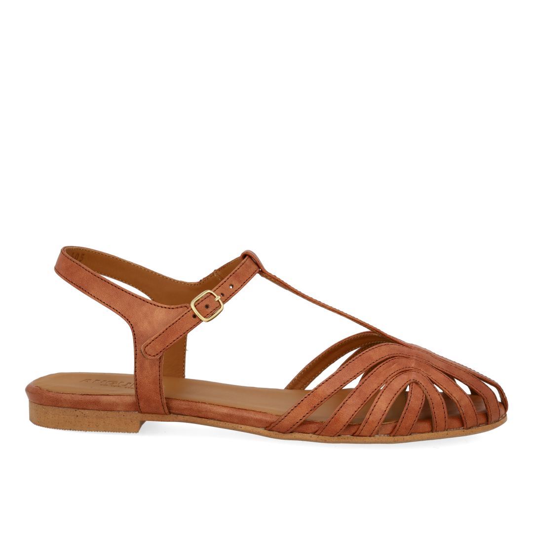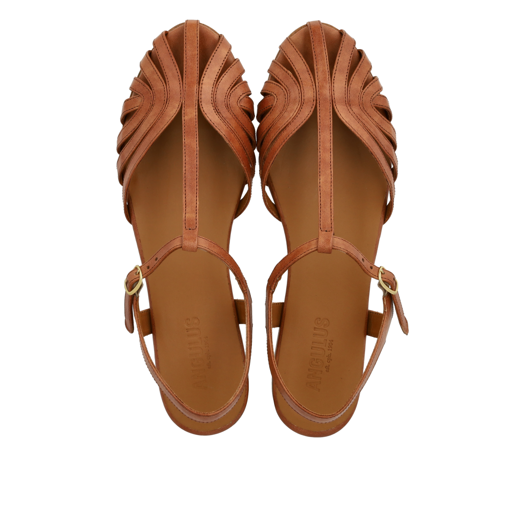 Flache, elegante Sandale mit schönem organischem Frontdetail. Die Sandale hat einen T-Riemen mit verstellbarem Schnallenverschluss, eine gepolsterte Innensohle, chromfreies Lederfutter und eine leichte Tunikasohle. Gefertigt aus natürlichem und atmungsaktivem Leder. Entworfen in Dänemark und handgefertigt mit Liebe in Portugal.