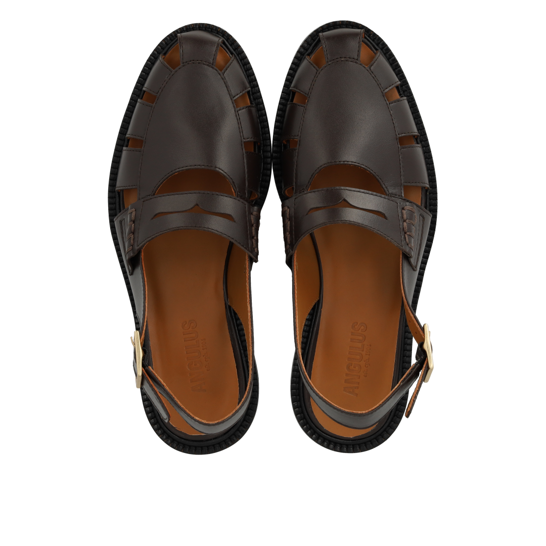 Der Loafer hat eine mandelförmige Spitze, einen verstellbaren Slingback-Verschluss mit goldener Schnalle, eine gepolsterte Innensohle, chromfreies Lederfutter und eine leichte Tunitsohle mit Zierstreifen und Gummi an der Laufsohle für zusätzlichen Komfort und Stabilität.
