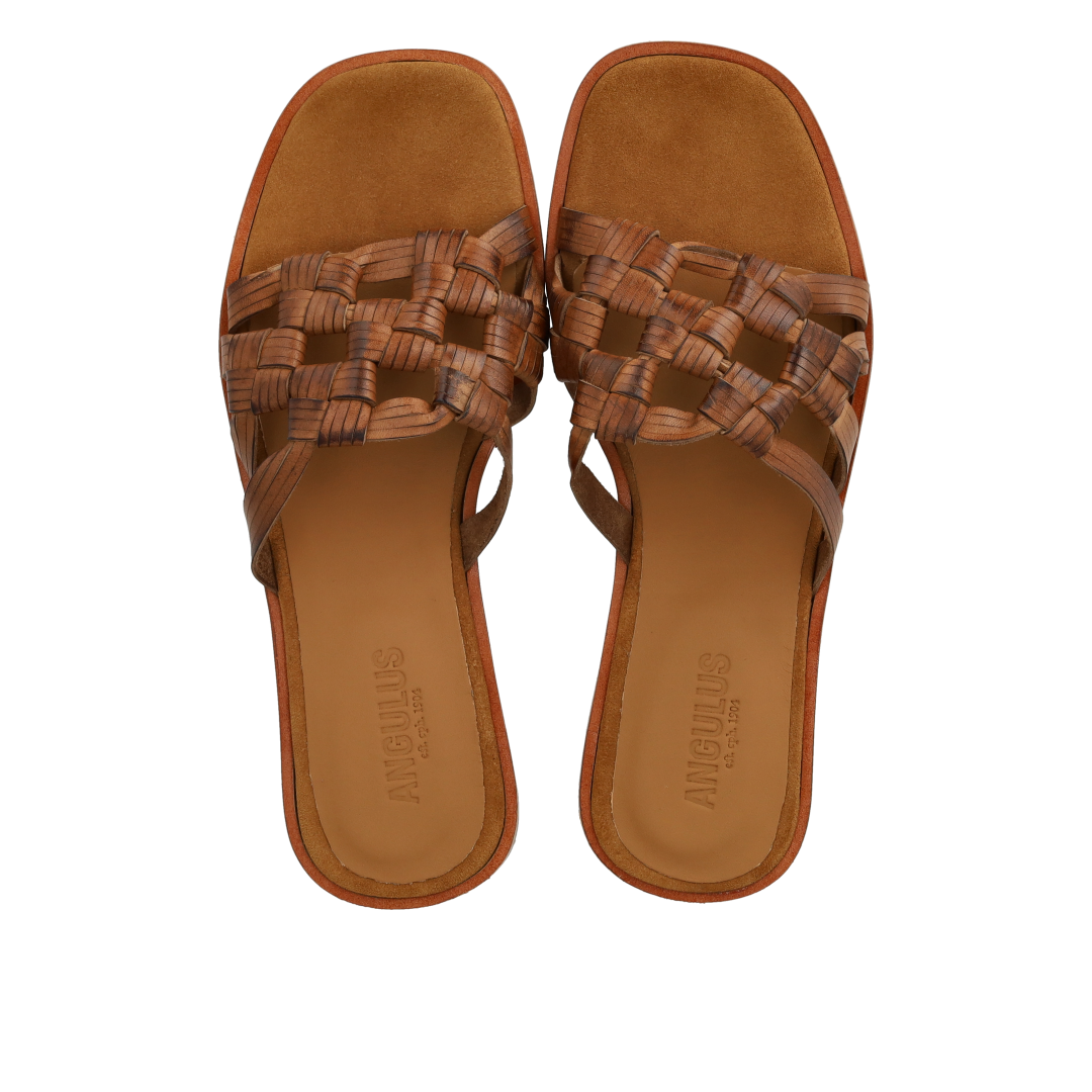Einfache Slip-on-Sandale mit Vorderteil aus geflochtenem Leder. Die Sandale hat eine abgerundete Spitze, eine gepolsterte Innensohle aus chromfreiem Leder mit weichem Wildlederrand und eine leichte, weiche und flexible ANGULUS-Logo-Gummisohle. Aus natürlichem und atmungsaktivem Leder gefertigt. Entworfen in Dänemark und mit Liebe in Portugal handgefertigt. Kan indeholde krom. Kann Chrom enthalten.