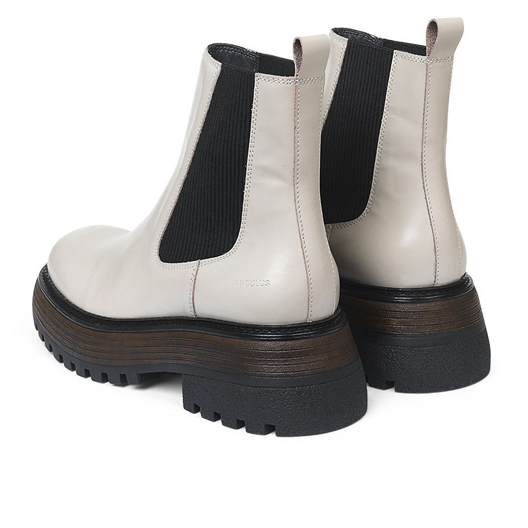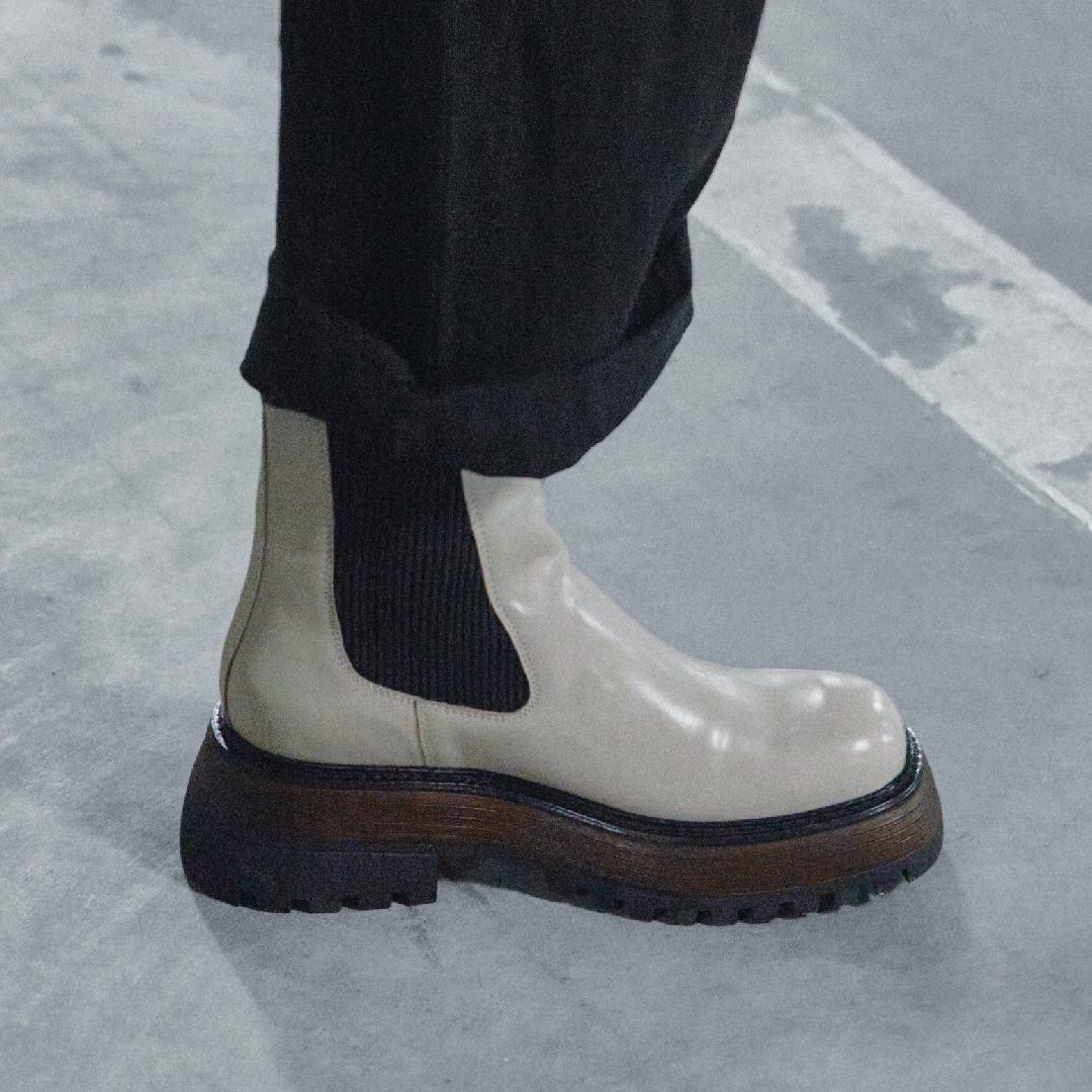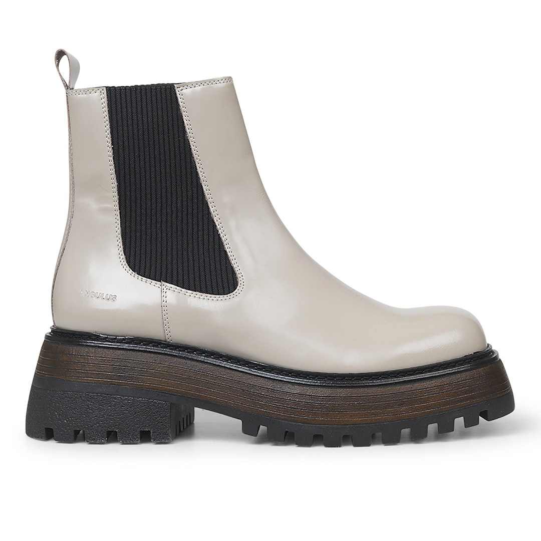 Chelsea-Stiefel mit Plateausohle und quadratischer Zehenpartie.