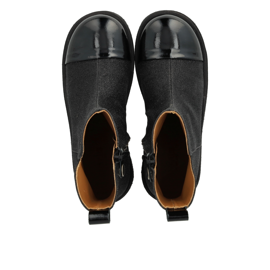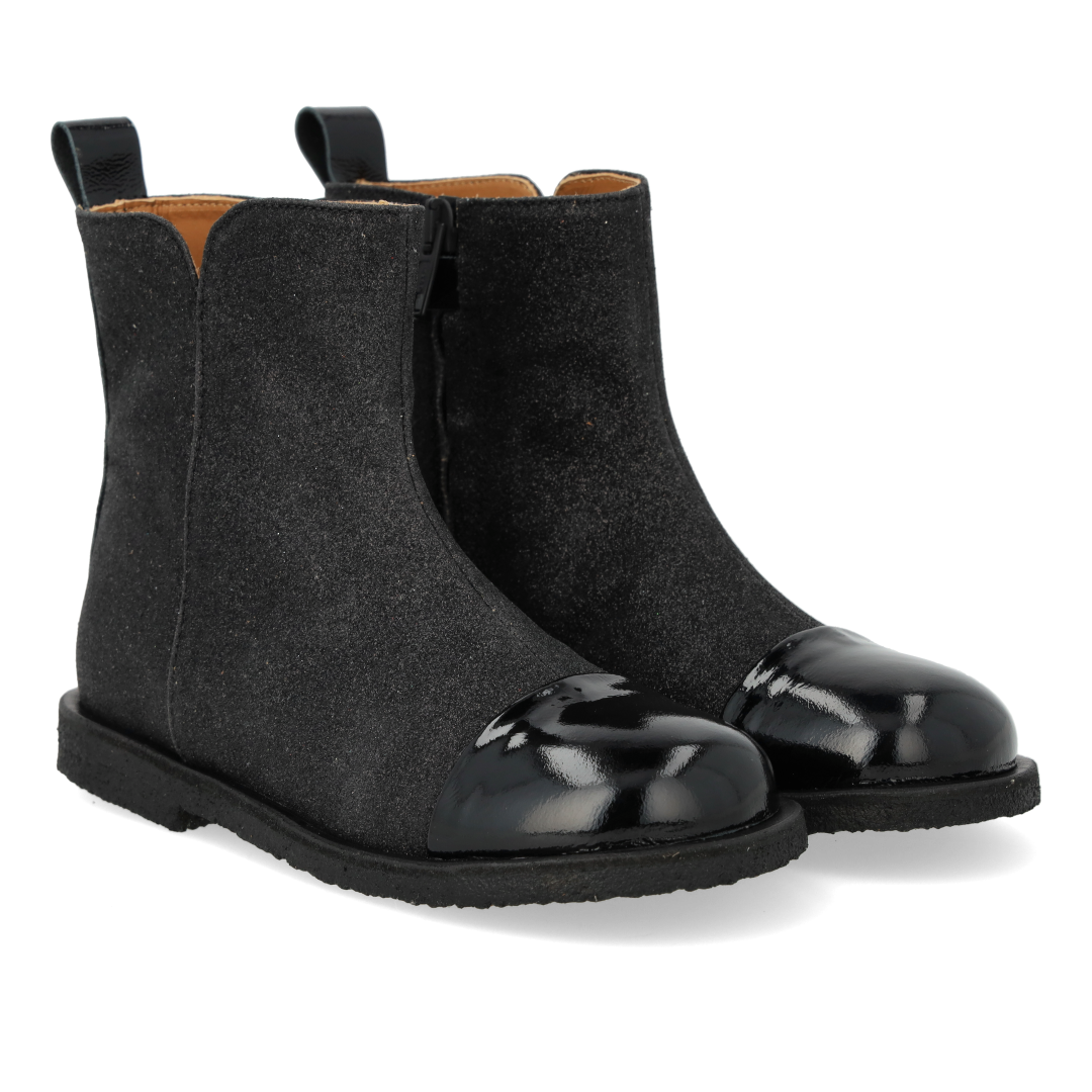 Stiefelette in Glitzer mit lachsfarbenem Knoten