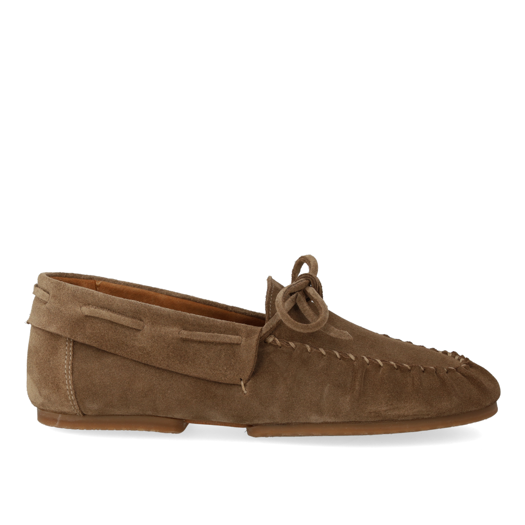 Ultraweiche Mokassin aus Wildleder mit Schnürsenkeln. Der Schuh hat eine mandelförmige Spitze, dekorative Falten, einen verstellbaren Schnürverschluss, eine gepolsterte Innensohle und ein Futter aus chromfreiem Wildleder sowie eine leichte, weiche und flexible ANGULUS-Logo-Gummisohle. Aus natürlichem und atmungsaktivem Leder gefertigt. Entworfen in Dänemark und mit Liebe in Portugal handgefertigt.